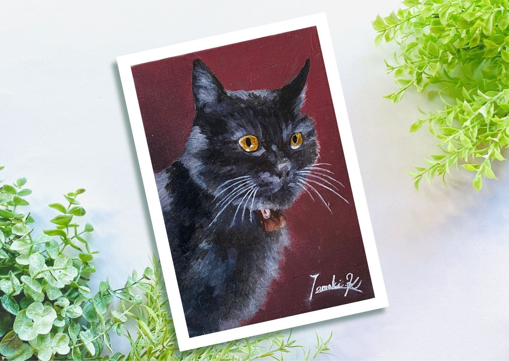 黒猫の絵のポストカード | tamakikurumi